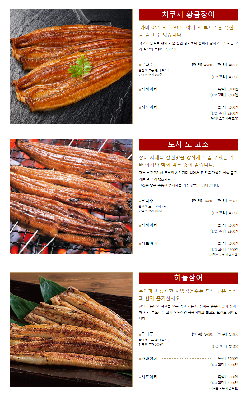메뉴는 아래처럼 3종류 장어로 나뉘어지고
